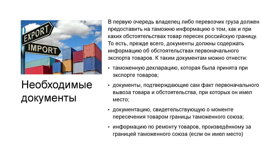 экспорта товаров. К таким документам можно отнести: