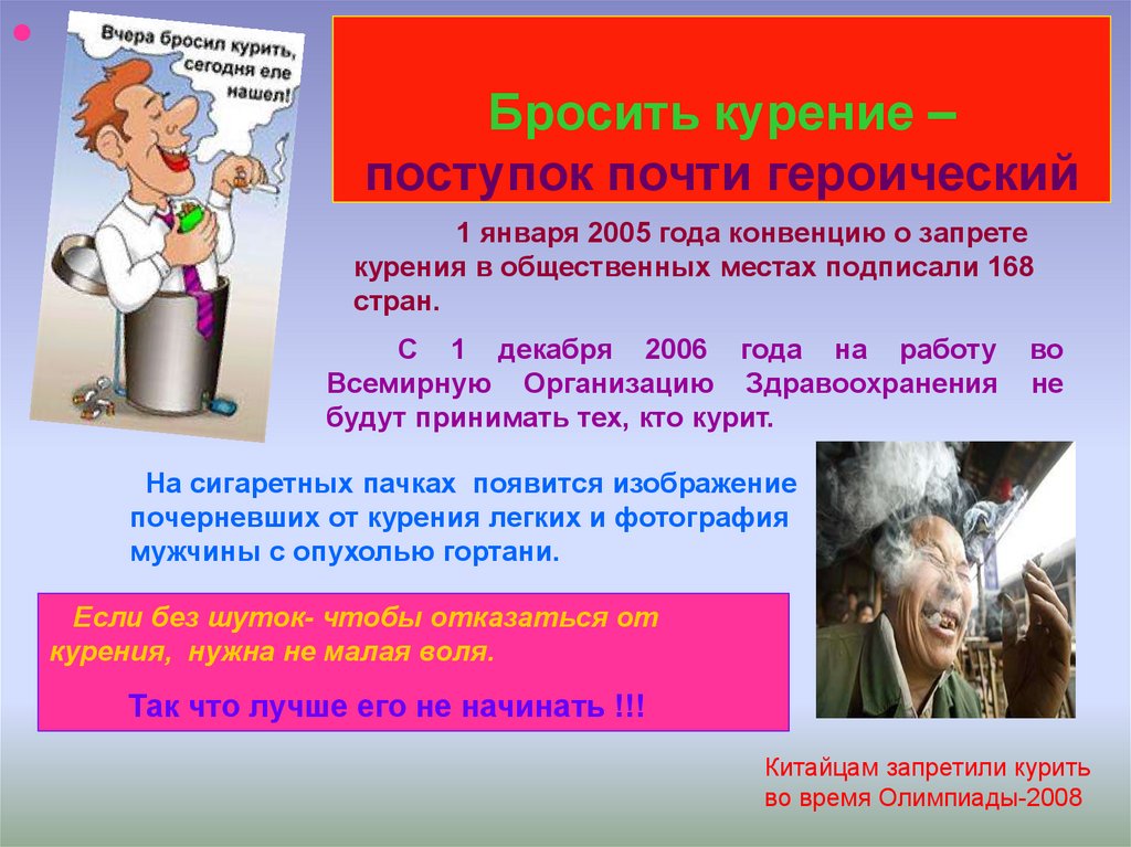 курения, нужна не малая воля.