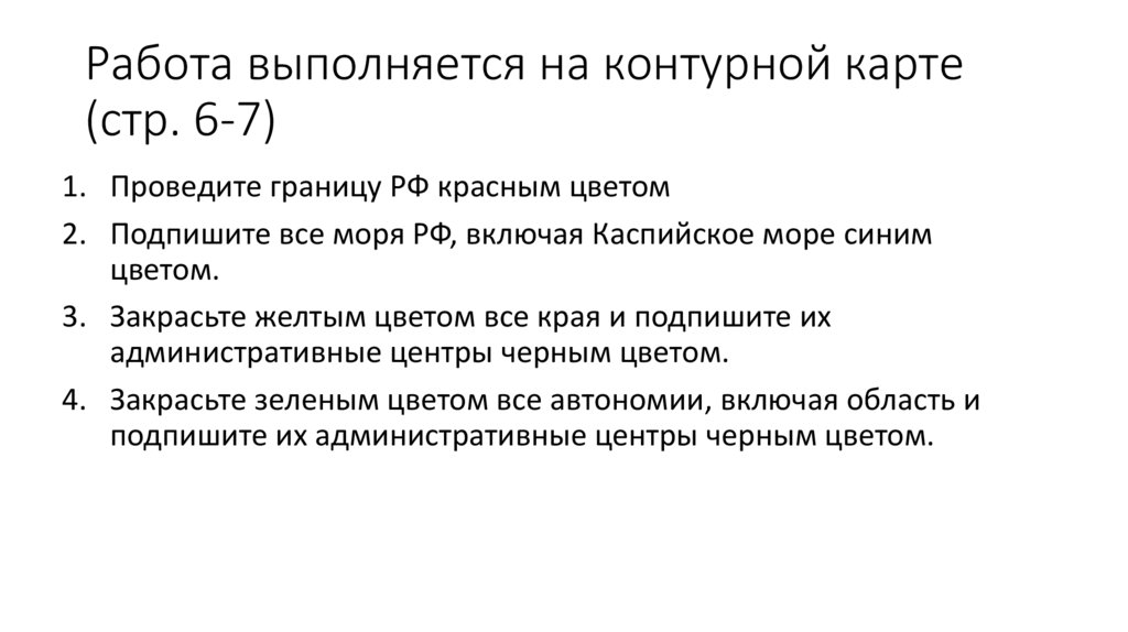 Работа выполняется на контурной карте(стр. 6-7)