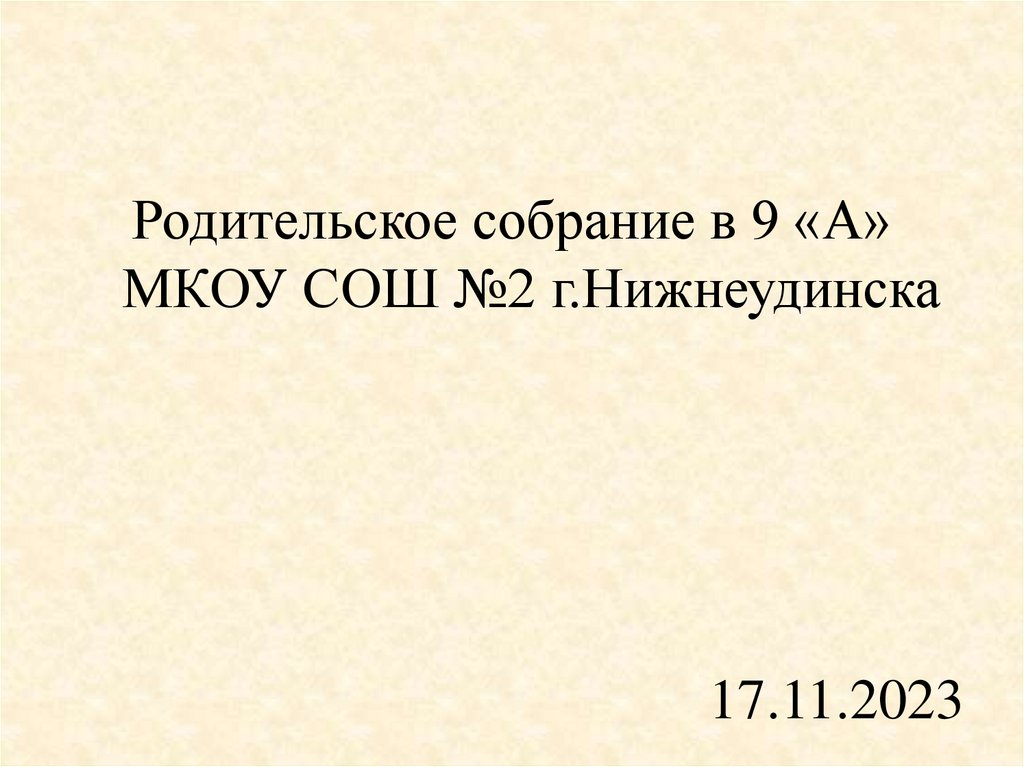 Родительское собрание в 9 «А»МКОУ СОШ №2 г.Нижнеудинска