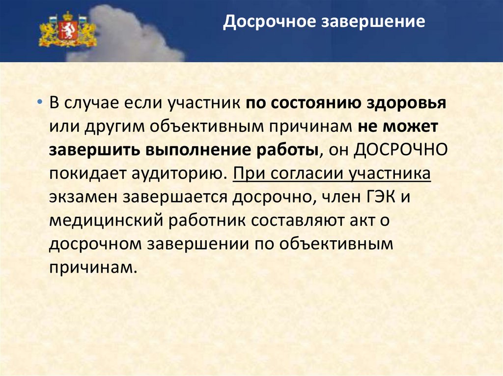 Досрочное завершение• В случае если участник по состоянию здоровья