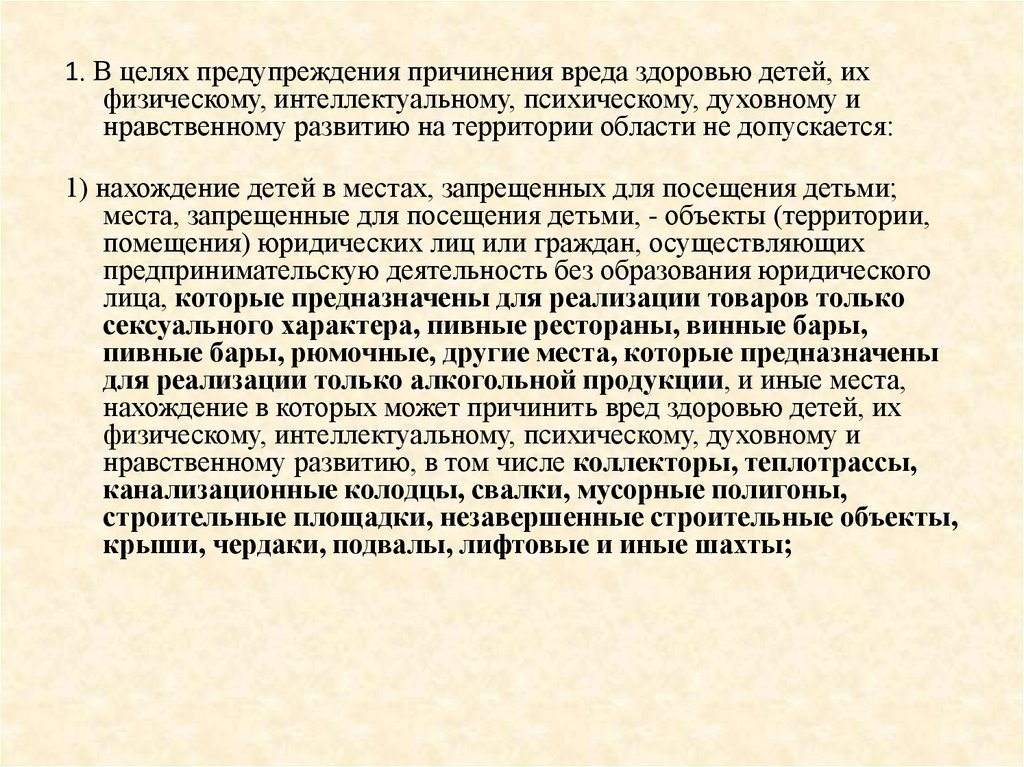 1) нахождение детей в местах, запрещенных для посещения детьми;