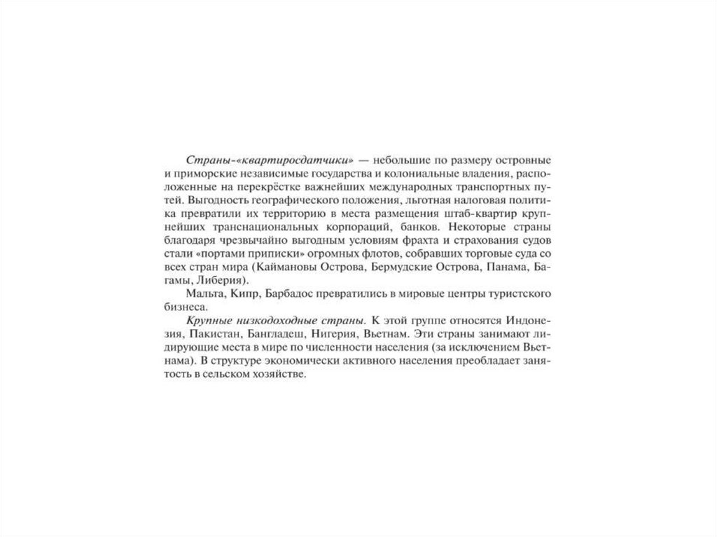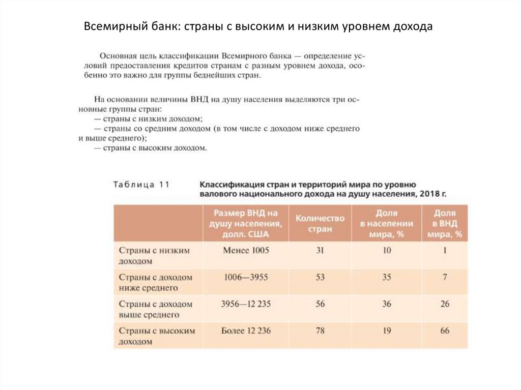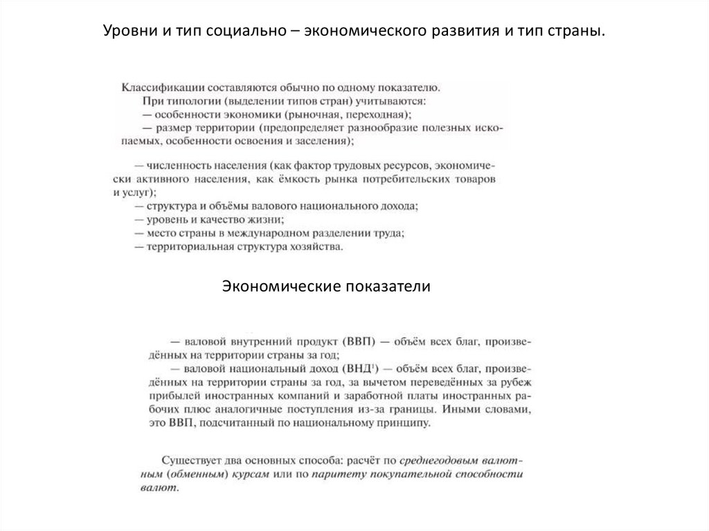 Уровни и тип социально – экономического развития и тип страны.Экономические показатели