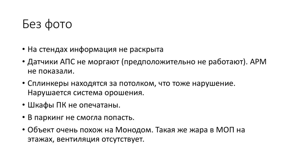 • Датчики АПС не моргают (предположительно не работают). АРМ