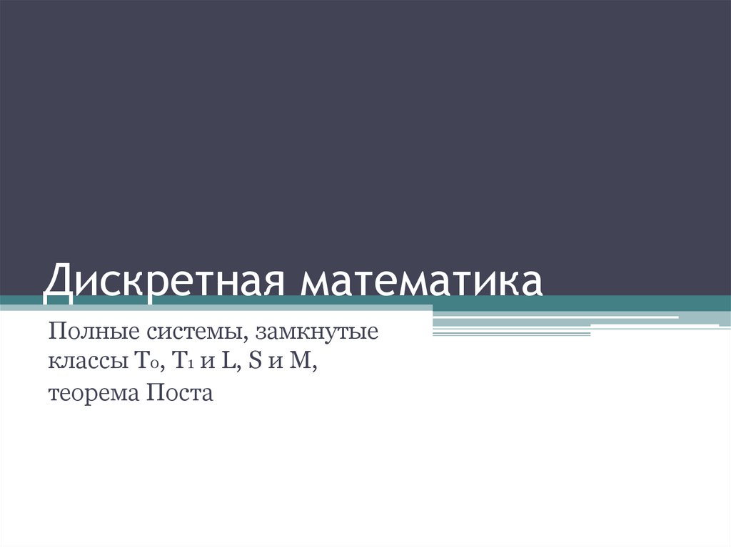 Дискретная математика. Полные системы, замкнутые классы T0, T1 и L, S и M, теорема Поста