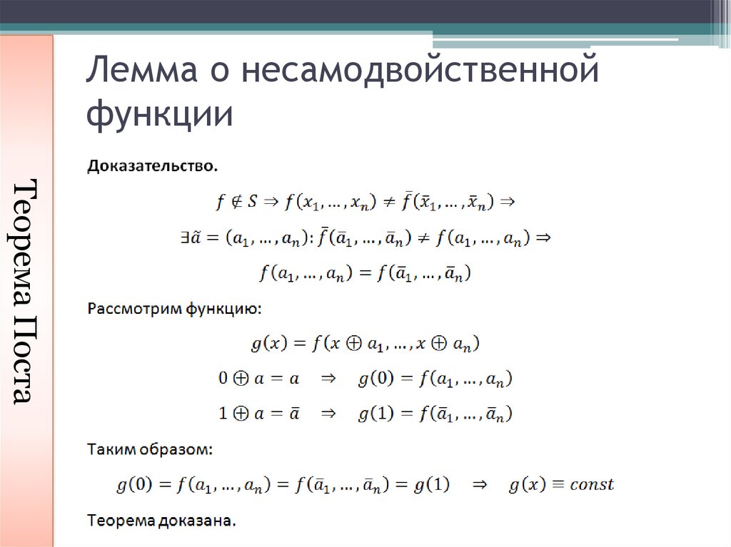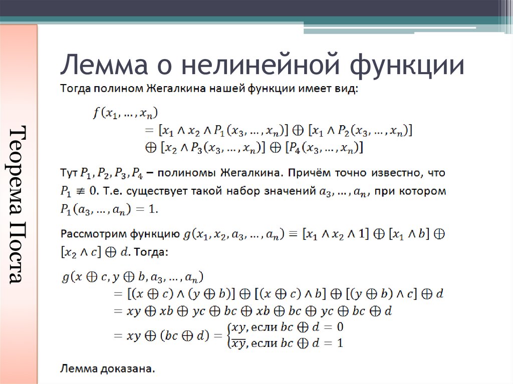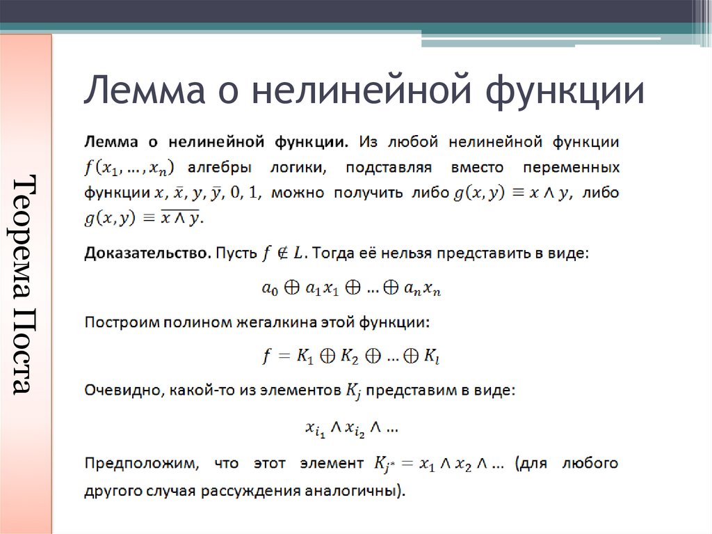 Лемма о нелинейной функцииТеорема Поста