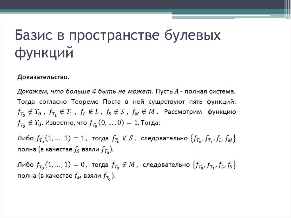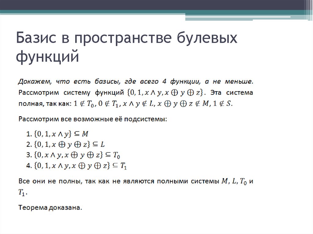 Базис в пространстве булевыхфункций