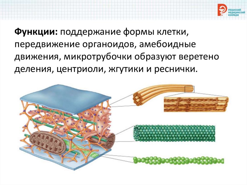 Функции: поддержание формы клетки,передвижение органоидов, амебоидные