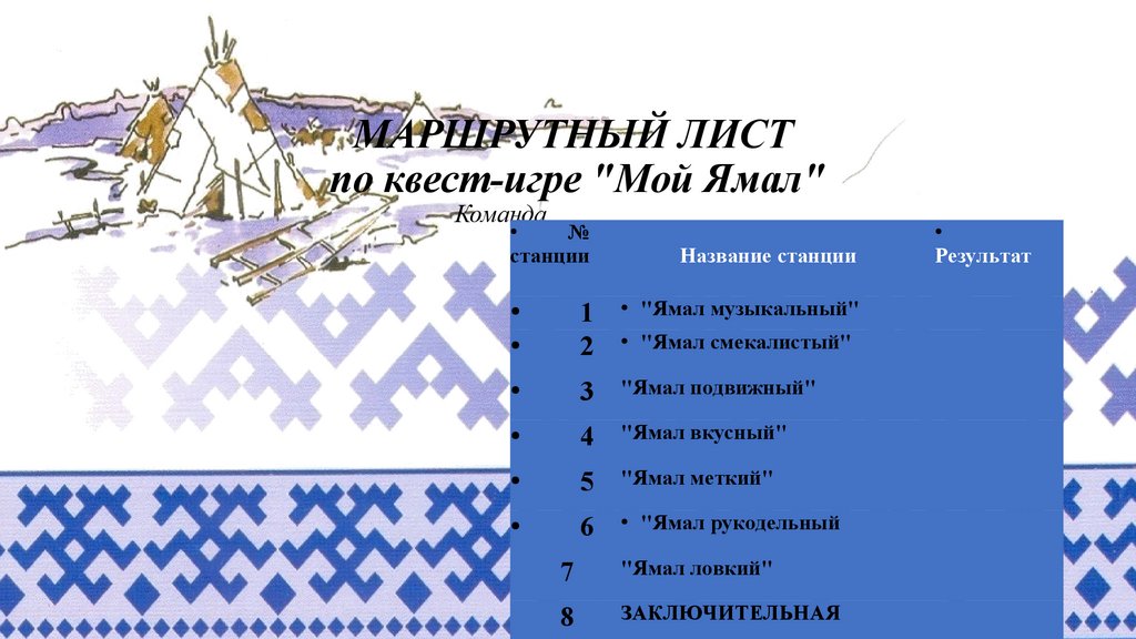 МАРШРУТНЫЙ ЛИСТпо квест-игре "Мой Ямал"