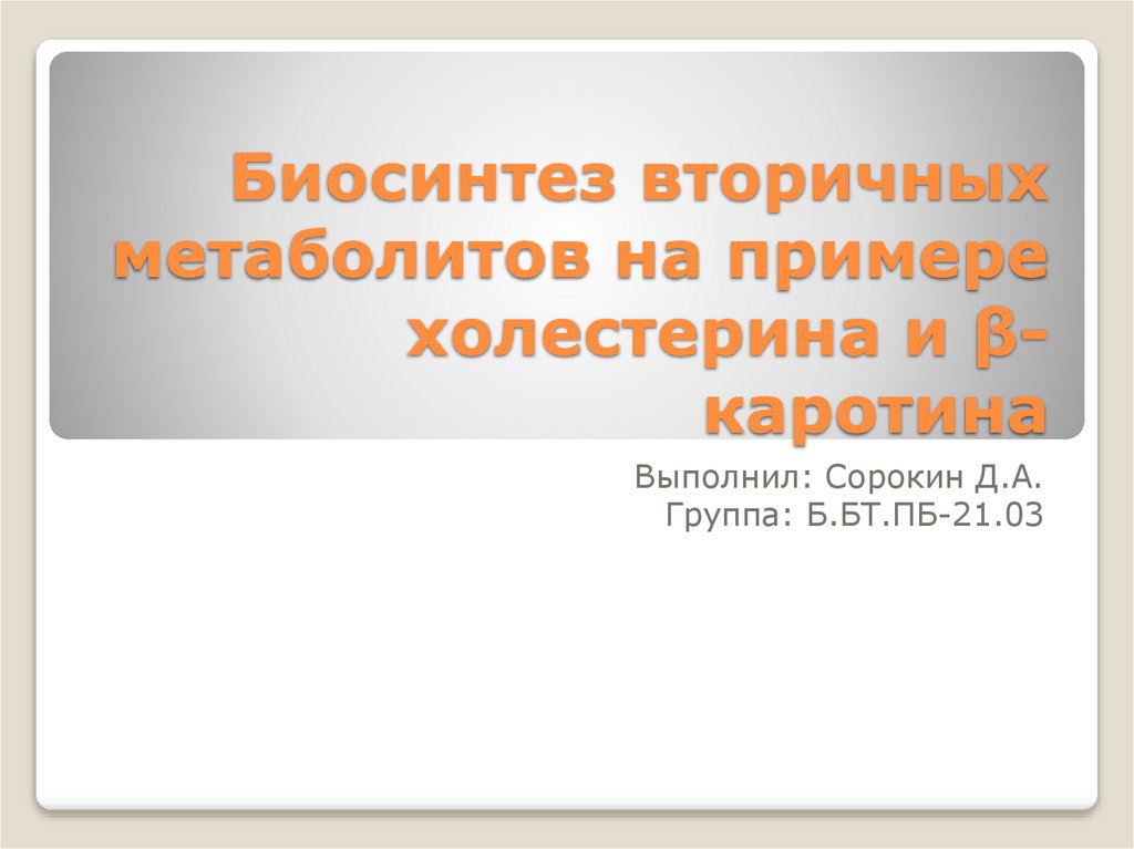Биосинтез вторичных метаболитов на примере холестерина и β-каротина