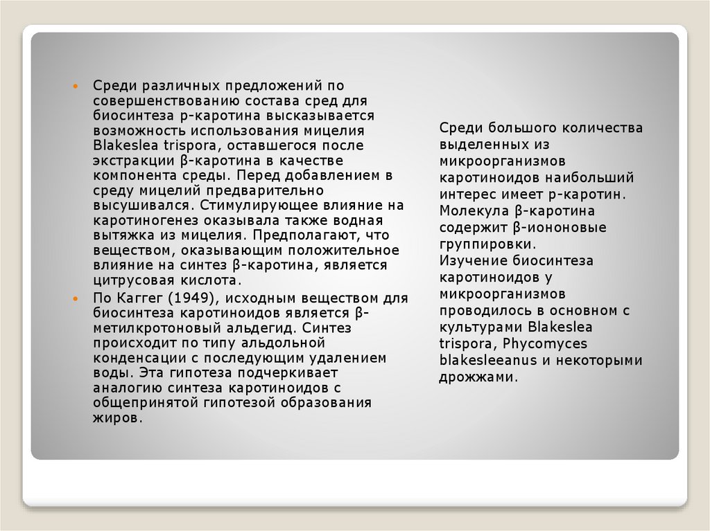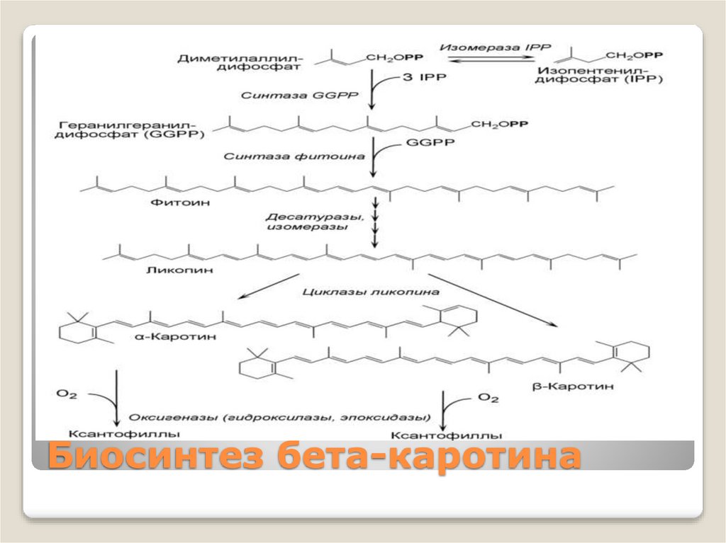 биосинтеза каротиноидов является βметилкротоновый альдегид. Синтез