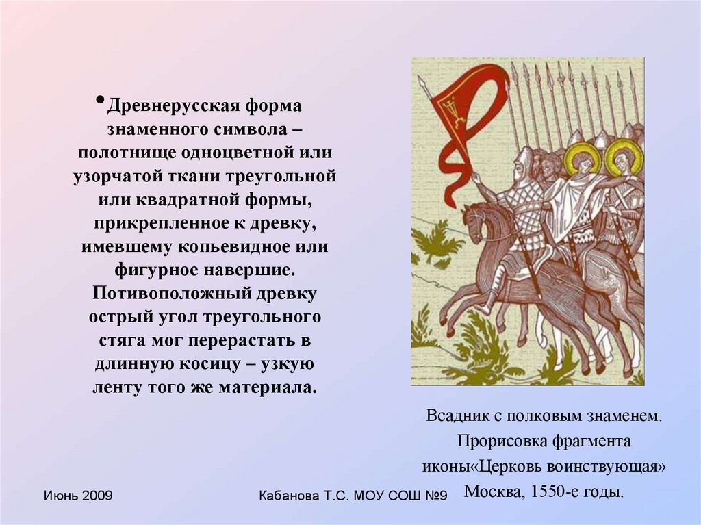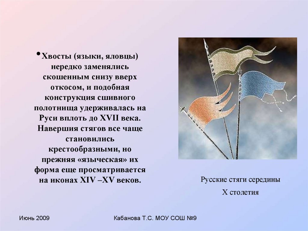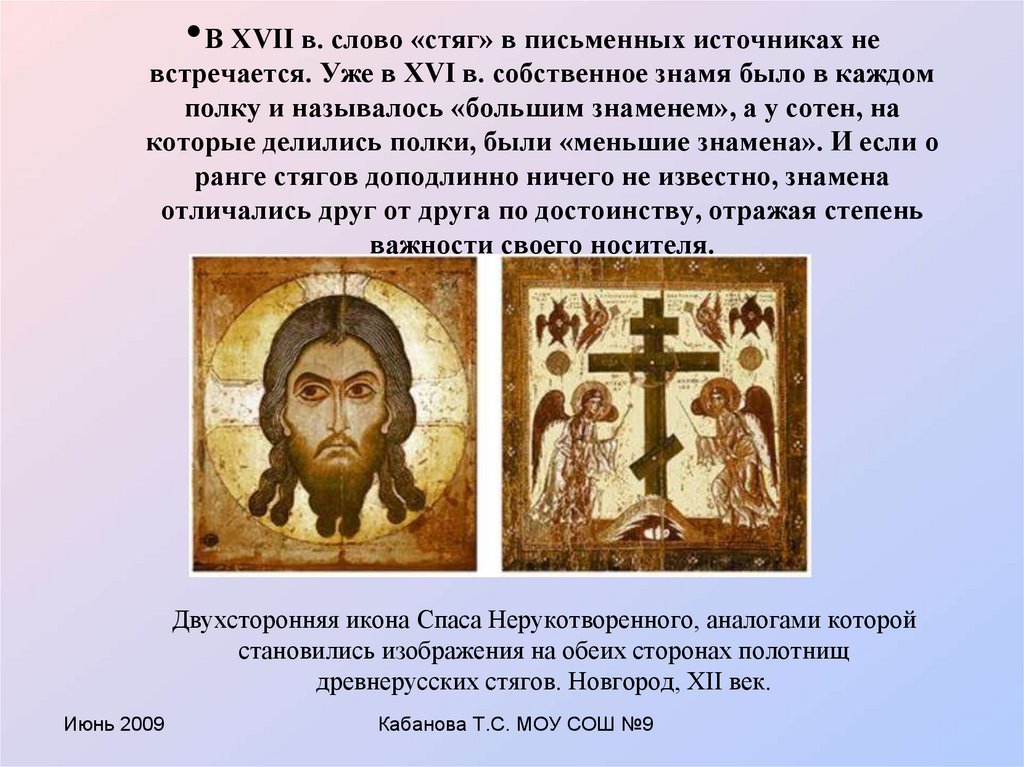 • В XVII в. слово «стяг» в письменных источниках невстречается. Уже в XVI в. собственное знамя было в каждом