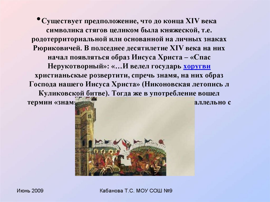 • Существует предположение, что до конца XIV векасимволика стягов целиком была княжеской, т.е.