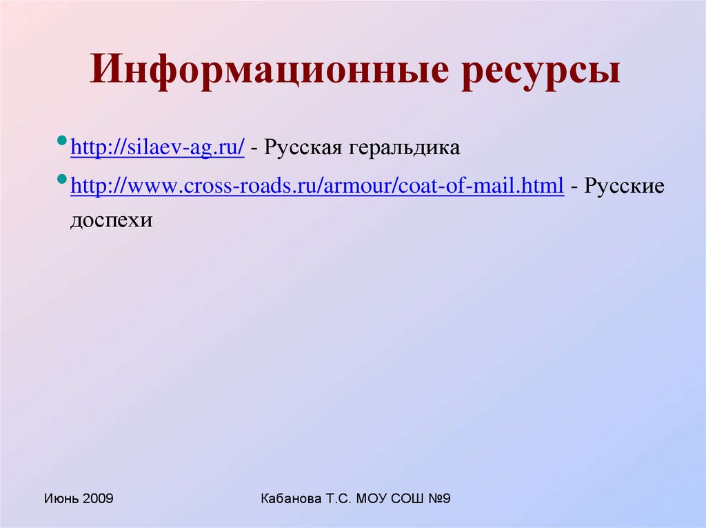 Информационные ресурсы• http://silaev-ag.ru/ - Русская геральдика