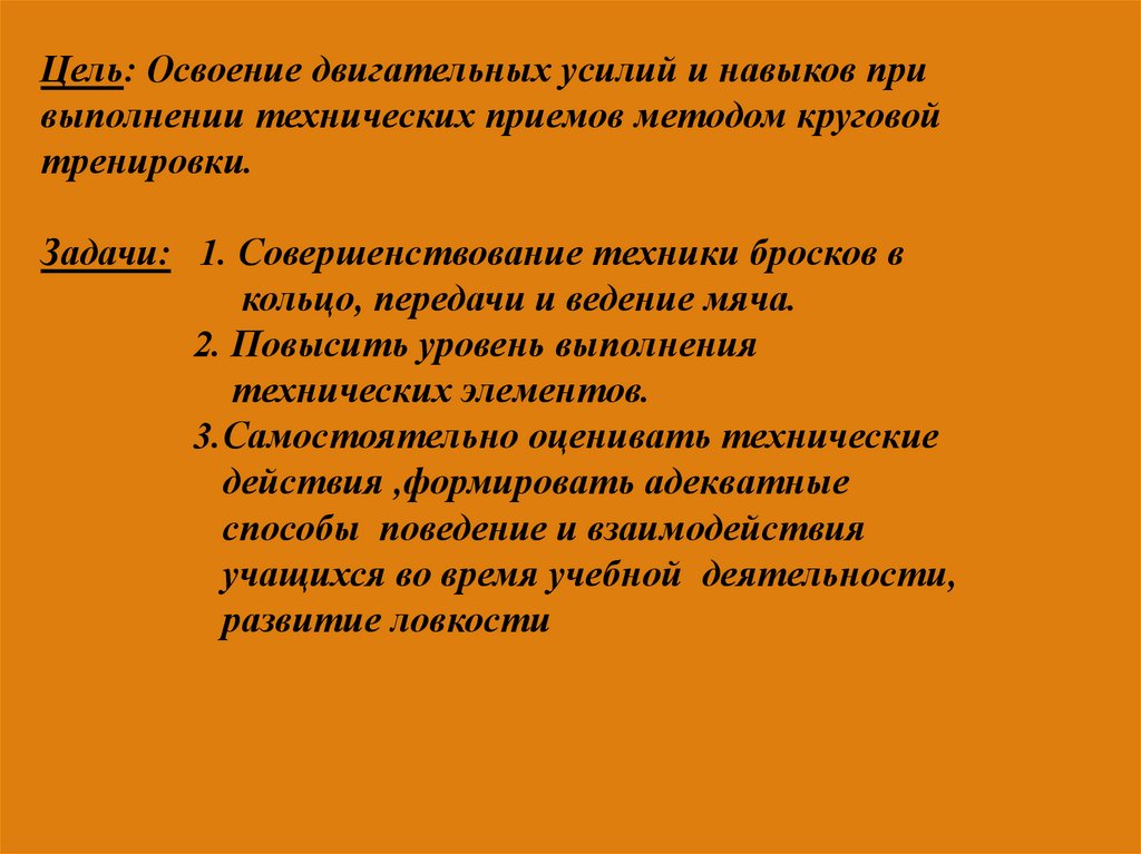 Цель: Освоение двигательных усилий и навыков привыполнении технических приемов методом круговой