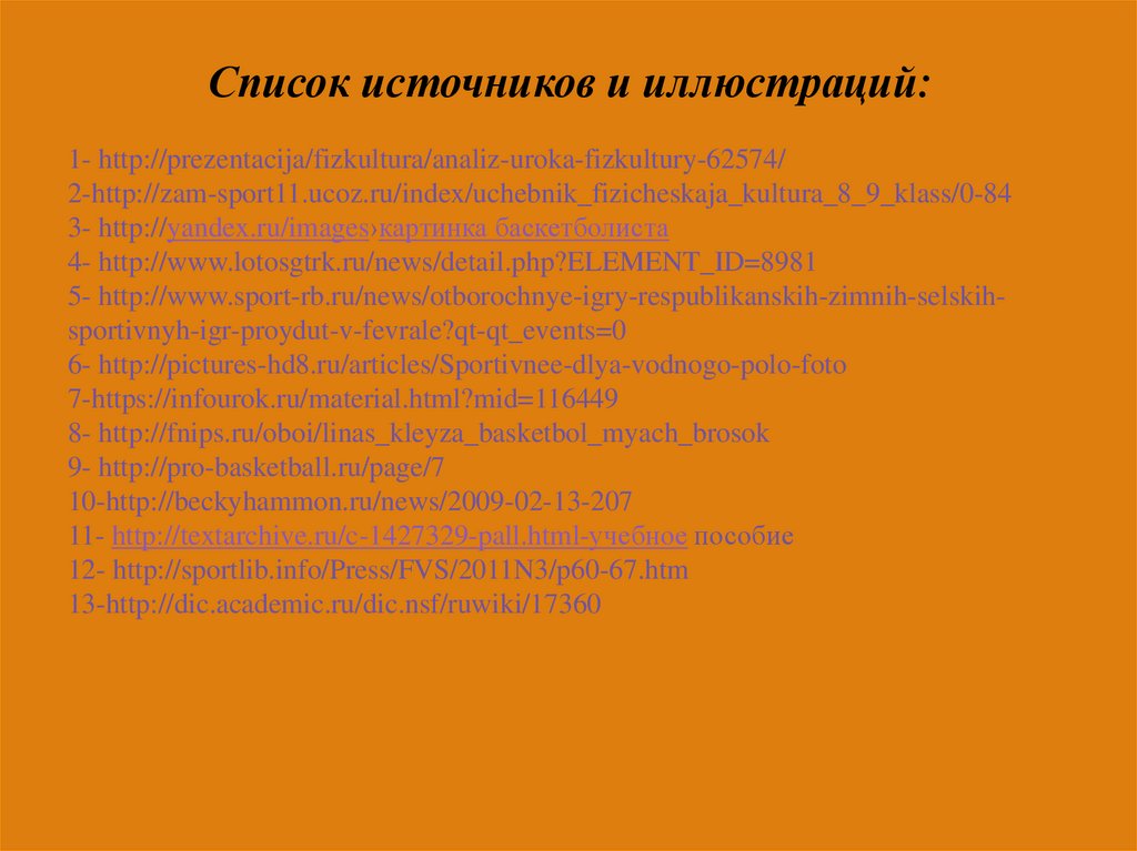 Список источников и иллюстраций:1- http://prezentacija/fizkultura/analiz-uroka-fizkultury-62574/