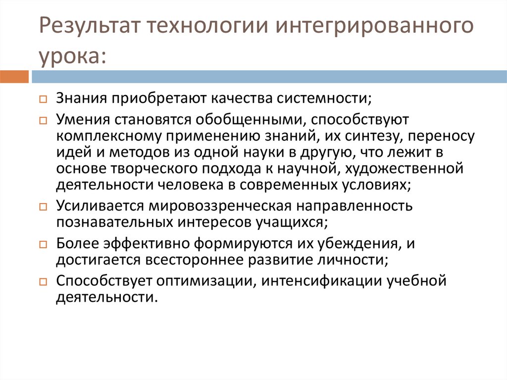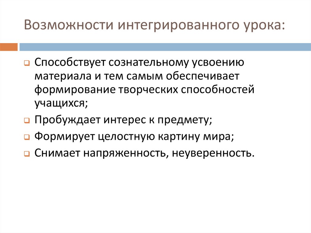 Возможности интегрированного урока:Способствует сознательному усвоению