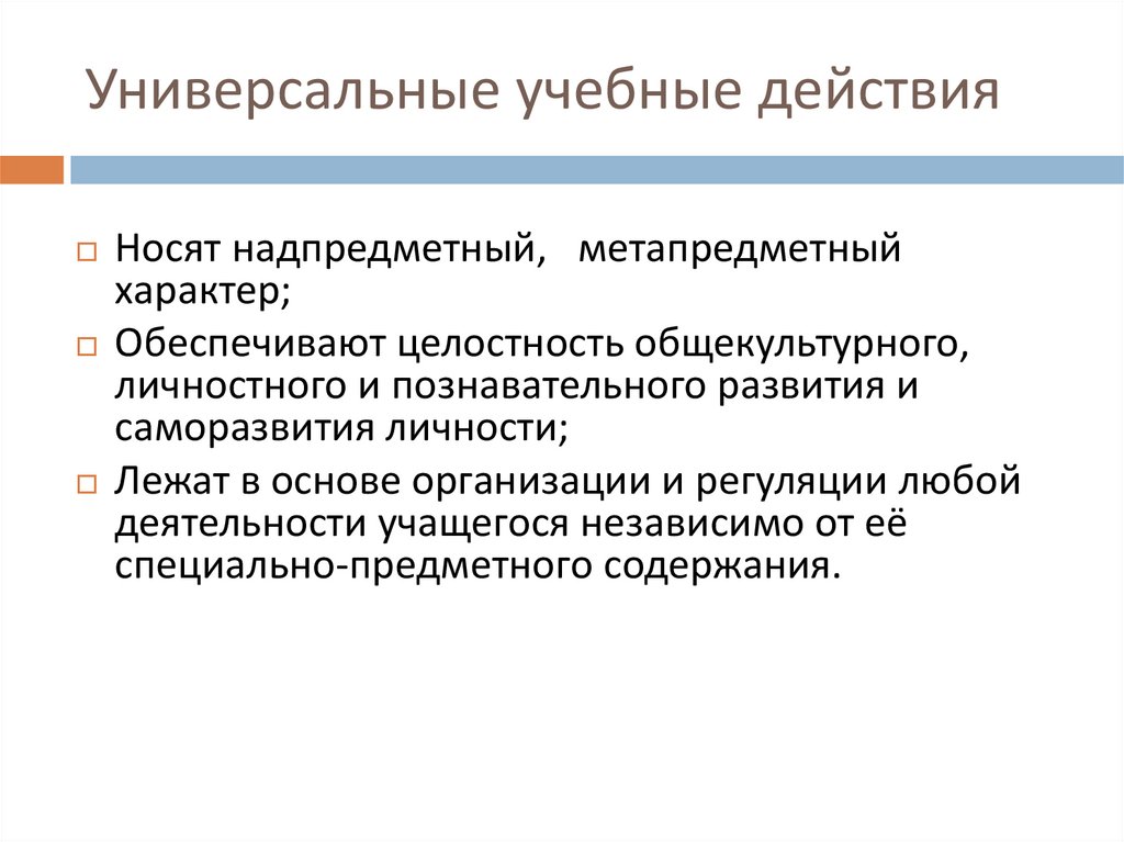 Универсальные учебные действияНосят надпредметный, метапредметный