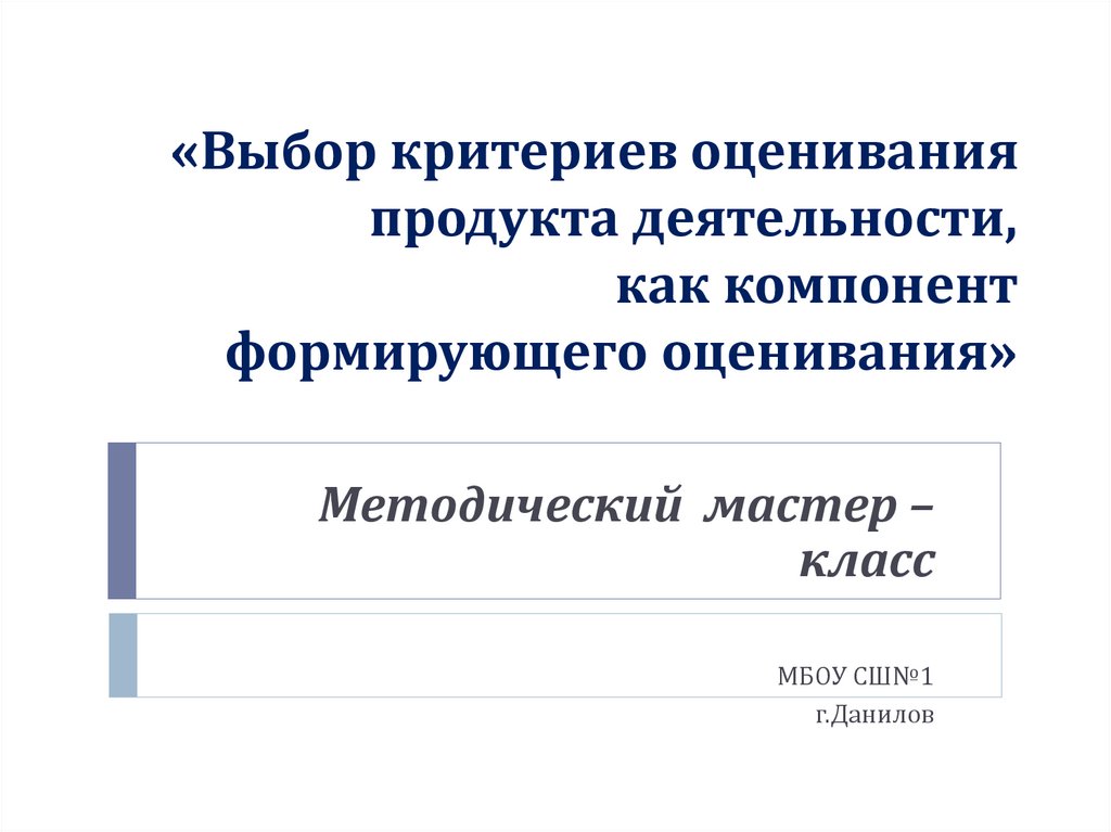 Выбор критериев оценивания продукта деятельности, как компонент формирующего оценивания