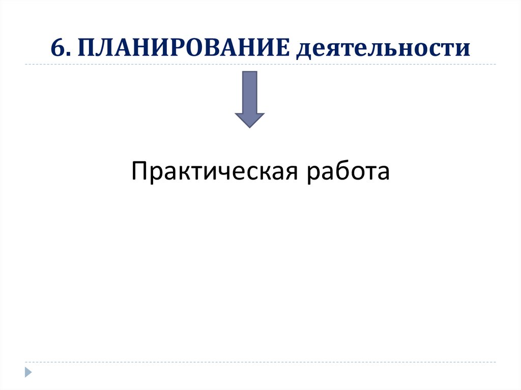 6. ПЛАНИРОВАНИЕ деятельностиПрактическая работа