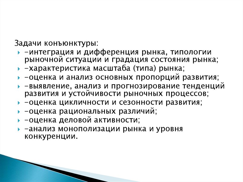 Задачи конъюнктуры:-интеграция и дифференция рынка, типологии