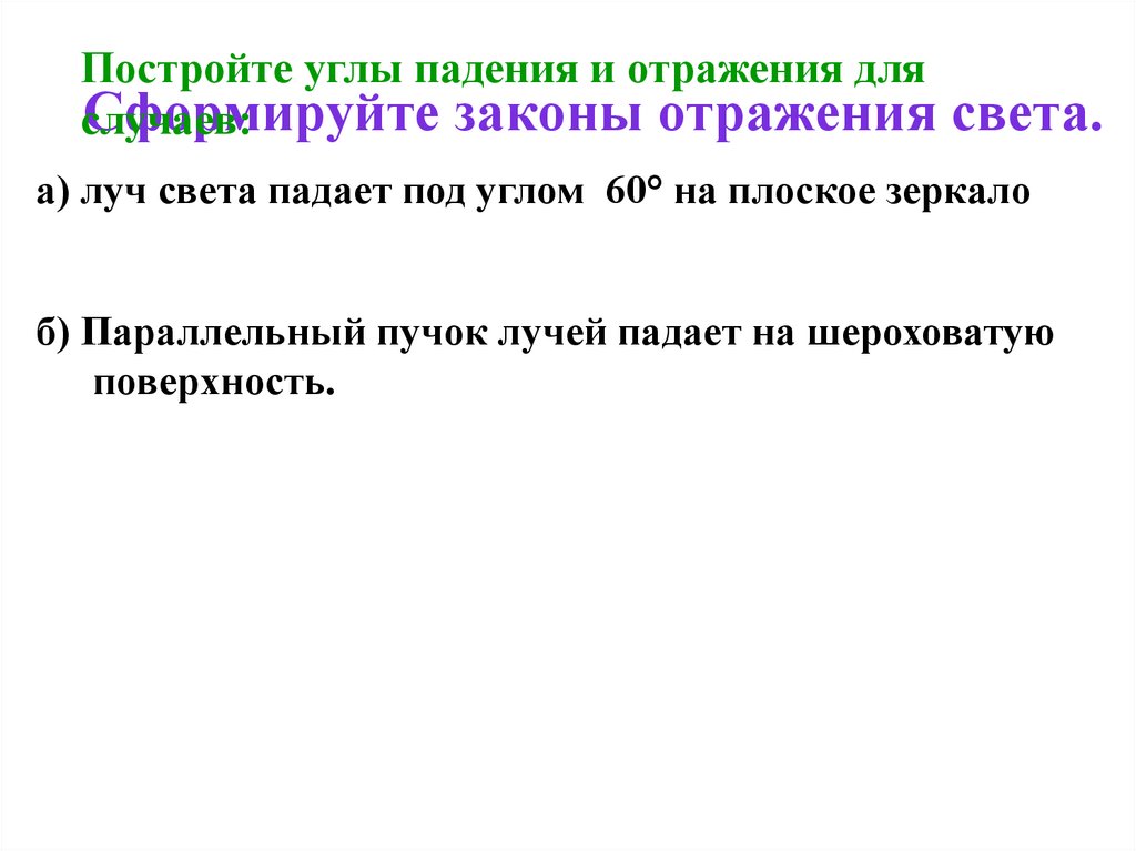 Постройте углы падения и отражения дляСформируйте законы отражения