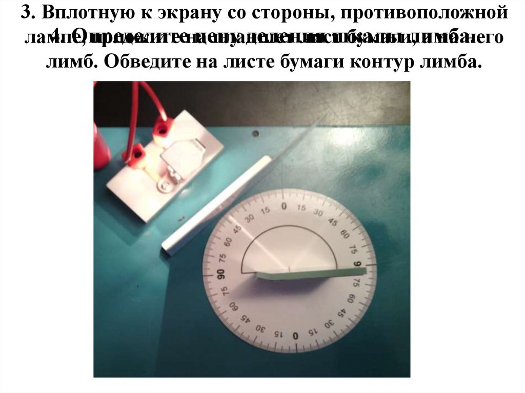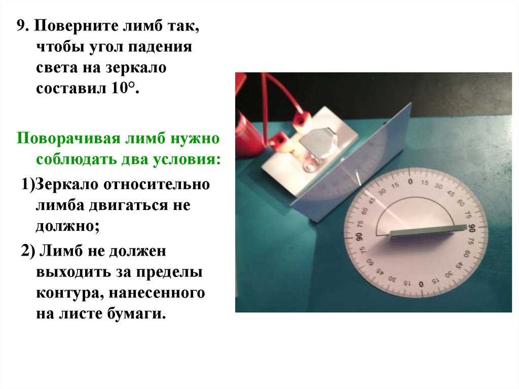 9. Поверните лимб так,чтобы угол падения