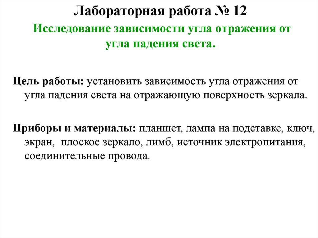 Лабораторная работа № 12Исследование зависимости угла отражения от