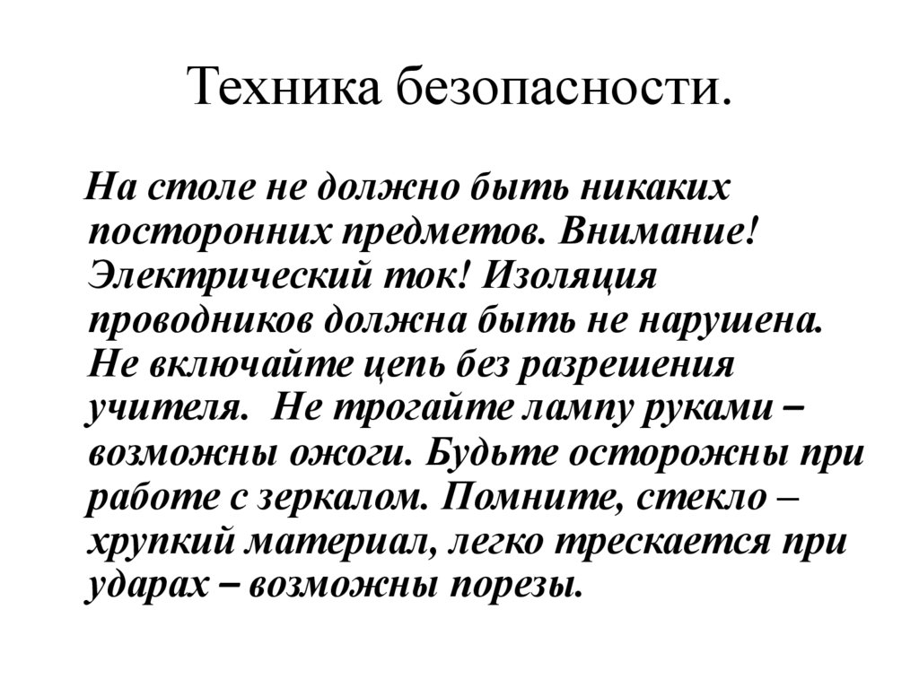 Техника безопасности.На столе не должно быть никаких