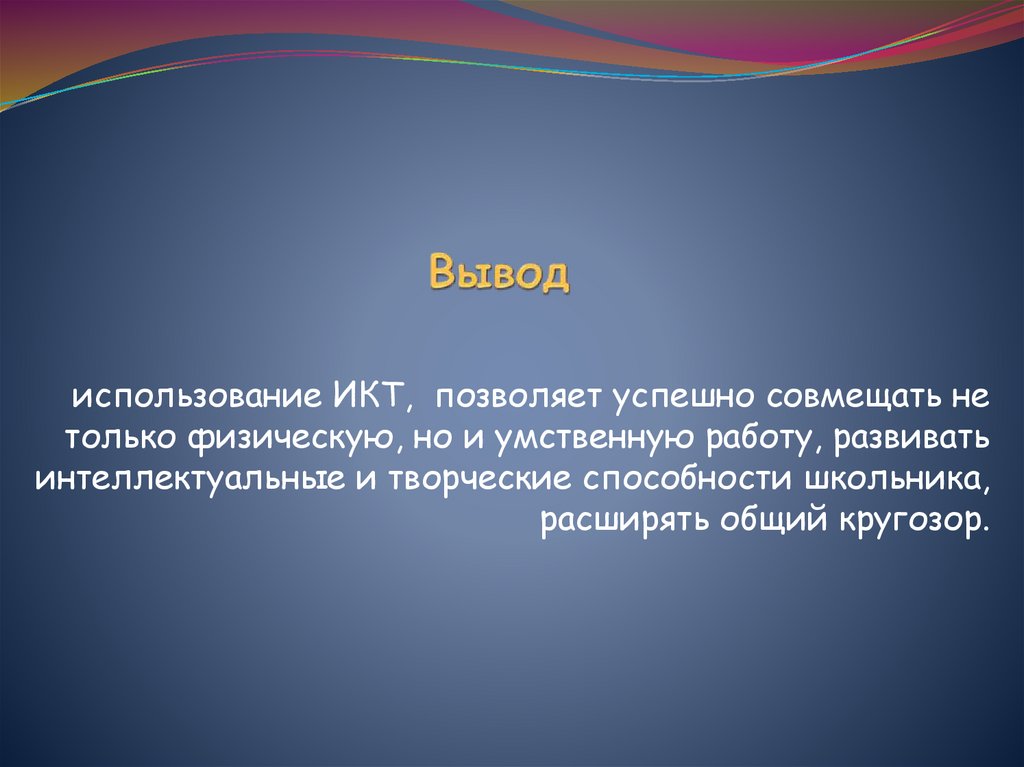 использование ИКТ, позволяет успешно совмещать нетолько физическую, но и умственную работу, развивать