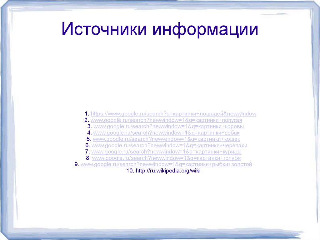 Источники информации1. https://www.google.ru/search?q=картинки+лошадей&newwindow
