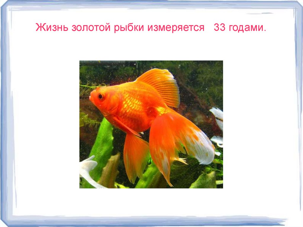Жизнь золотой рыбки измеряется тридцатью тремя годами.