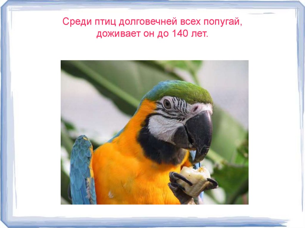 Среди птиц долговечней всех попугай, доживает он до ста сорока
