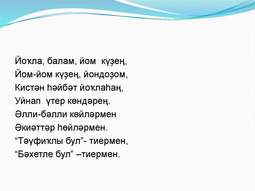 “Тәүфиҡлы бул”- тиермен,