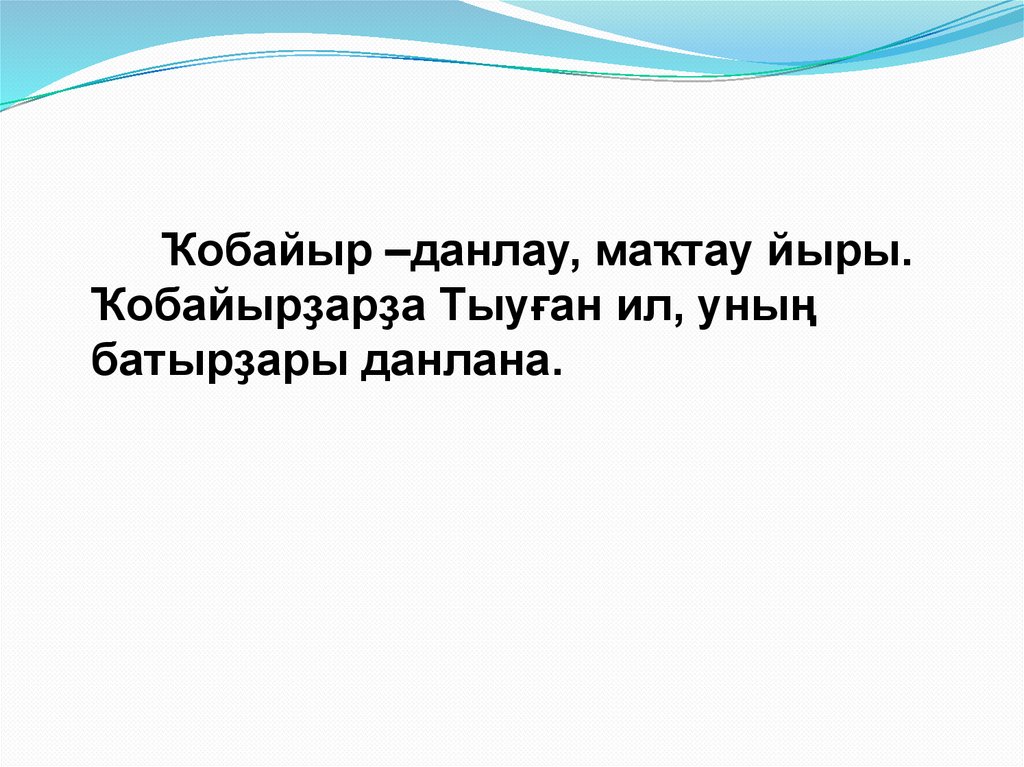 Ҡобайыр –данлау, маҡтау йыры.Ҡобайырҙарҙа Тыуған ил, уның