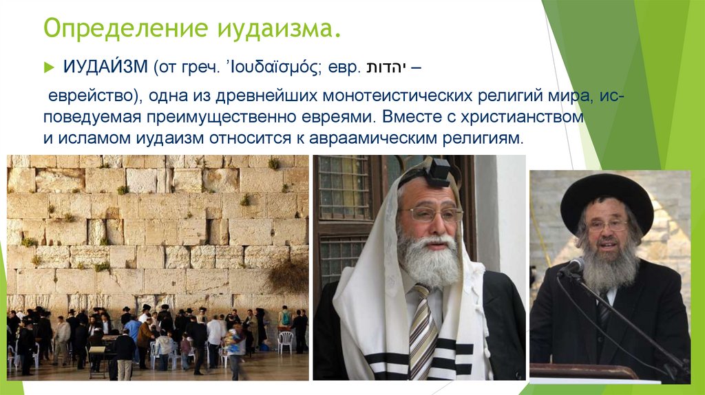 Определение иудаизма.ИУДАИ́ЗМ (от греч. ’Ιουδαϊσμός; евр. – יהדות