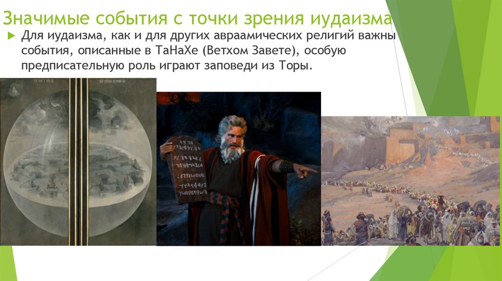 Значимые события с точки зрения иудаизмаДля иудаизма, как и для других авраамических религий важны