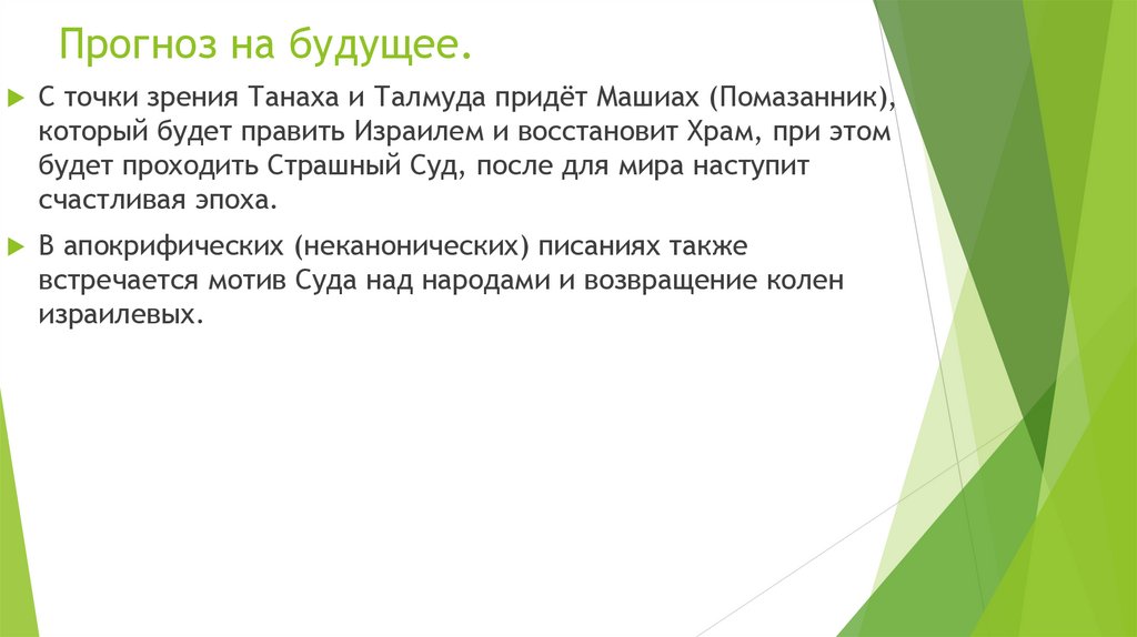 Прогноз на будущее.С точки зрения Танаха и Талмуда придёт Машиах (Помазанник),