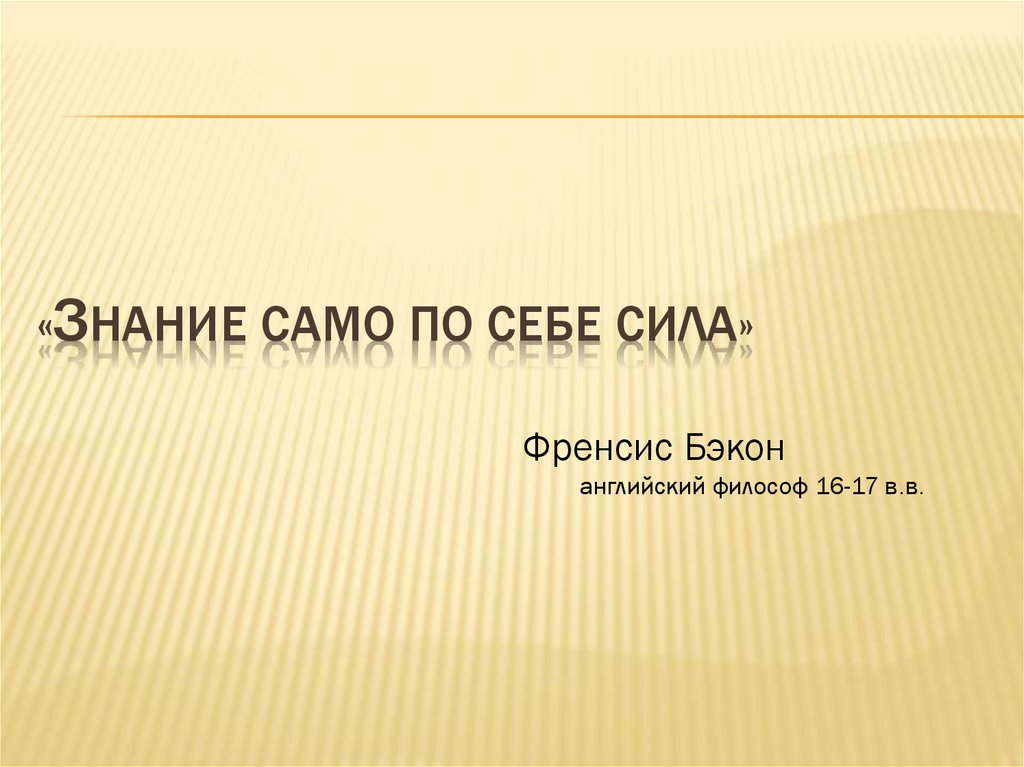 «ЗНАНИЕ САМО ПО СЕБЕ СИЛА»Френсис Бэкон