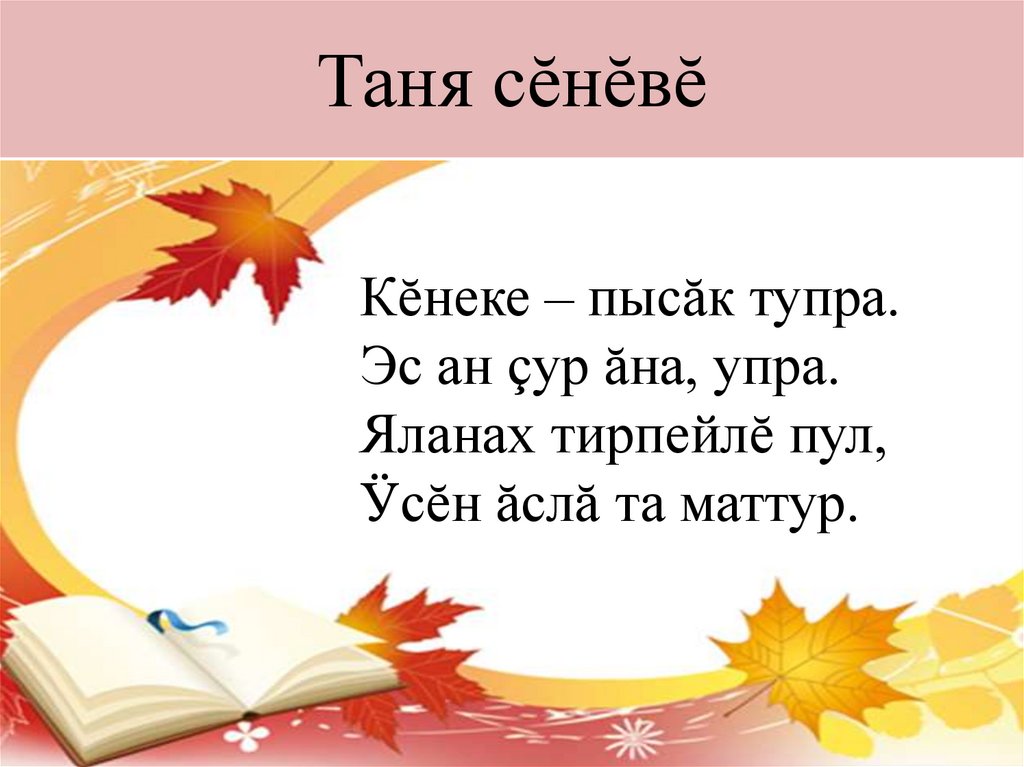çурмастăп. Туссем, эпĕ сире çакна каласшăн: кĕнекесем çине ан çырăр, вĕсене