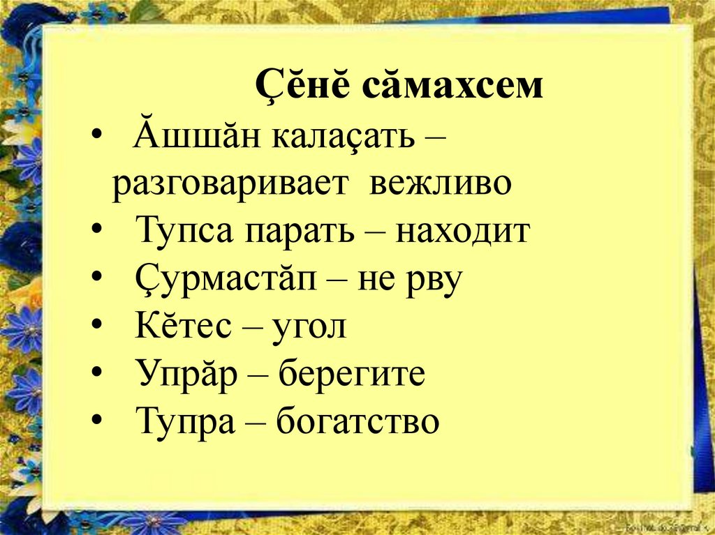 Çĕнĕ сăмахсем• Ăшшăн калаçать –