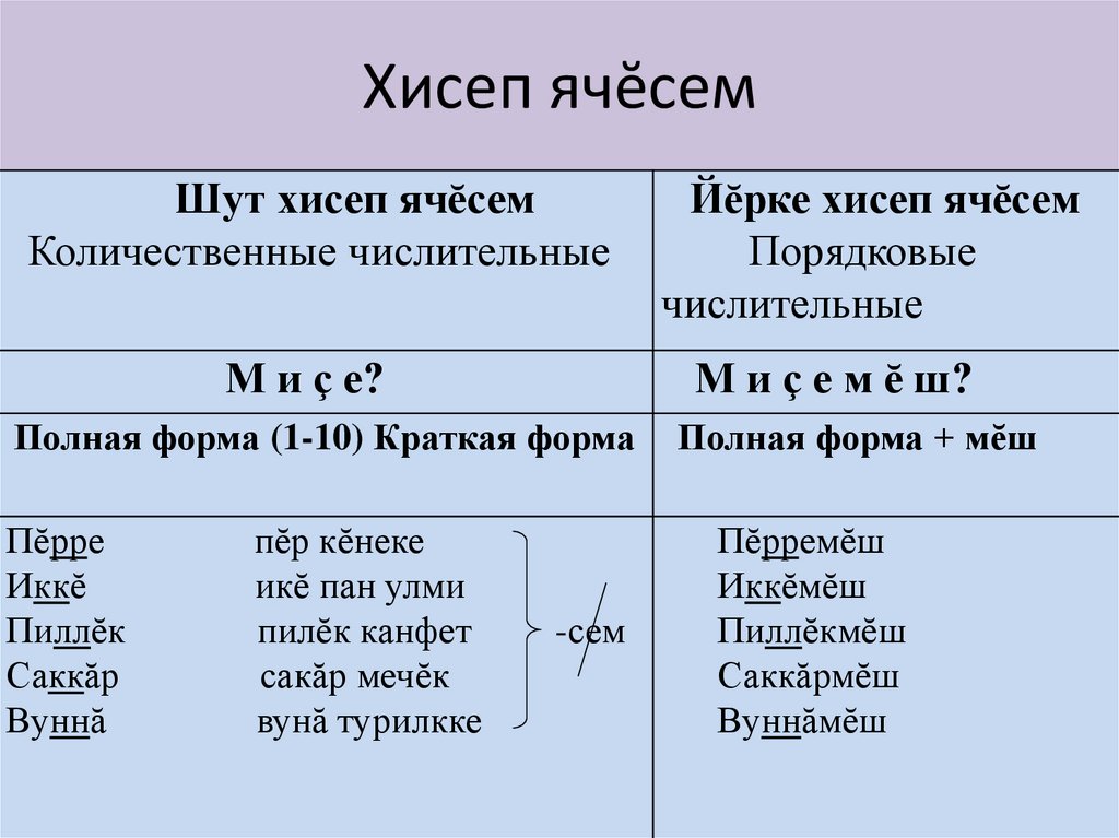 çырмалла. Хисеп ячĕсемпе усă