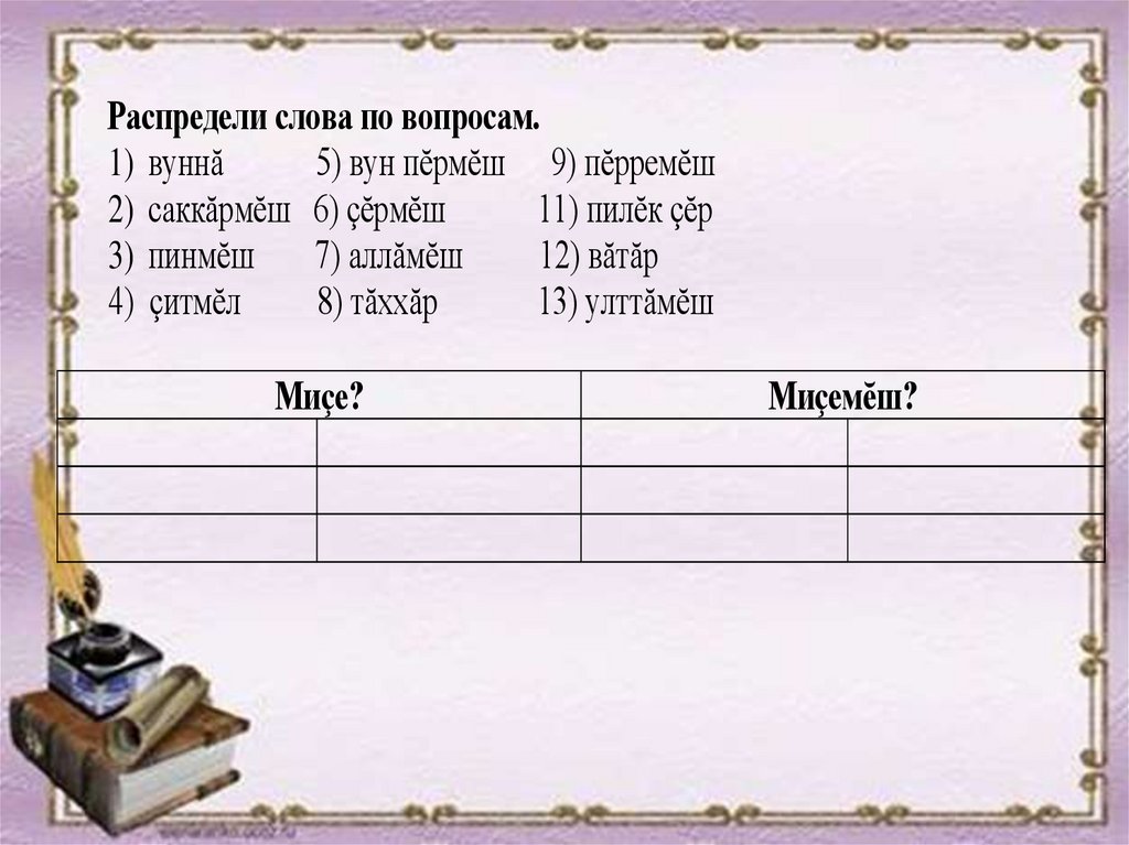 Распредели слова по вопросам.1) вуннă