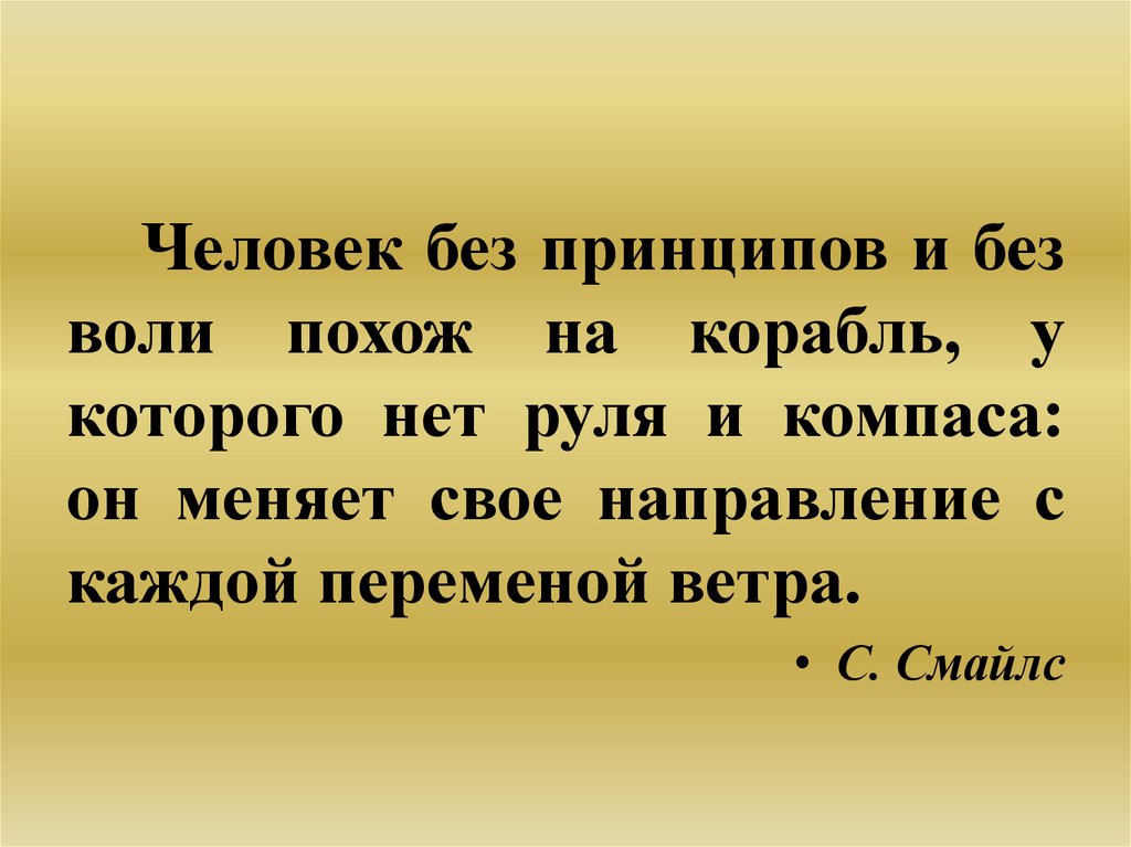 Человек без принципов и безволи похож на корабль, у
