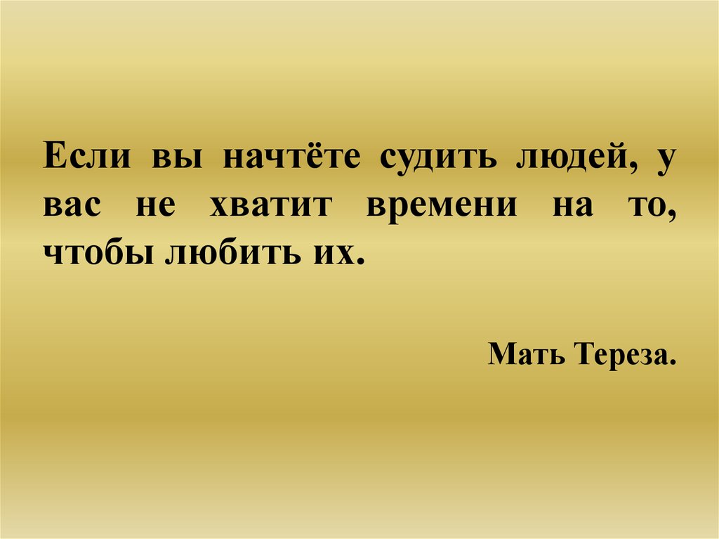 Если вы начтёте судить людей, увас не хватит времени на то,