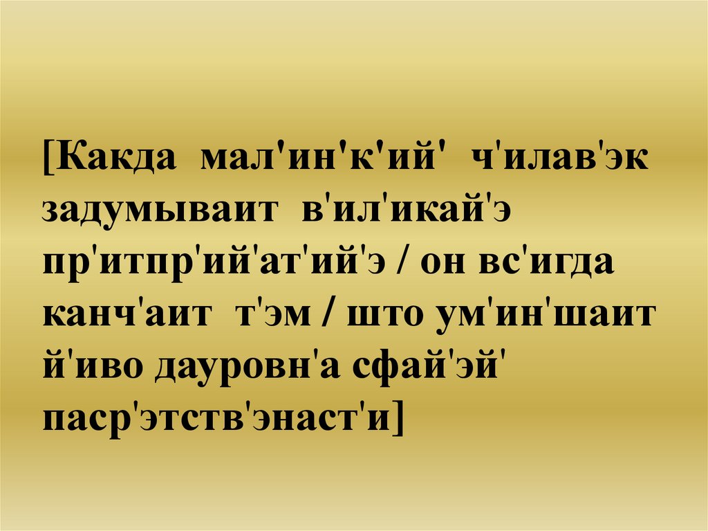 [Какда мал'ин'к'ий' ч'илав'экзадумываит в'ил'икай'э