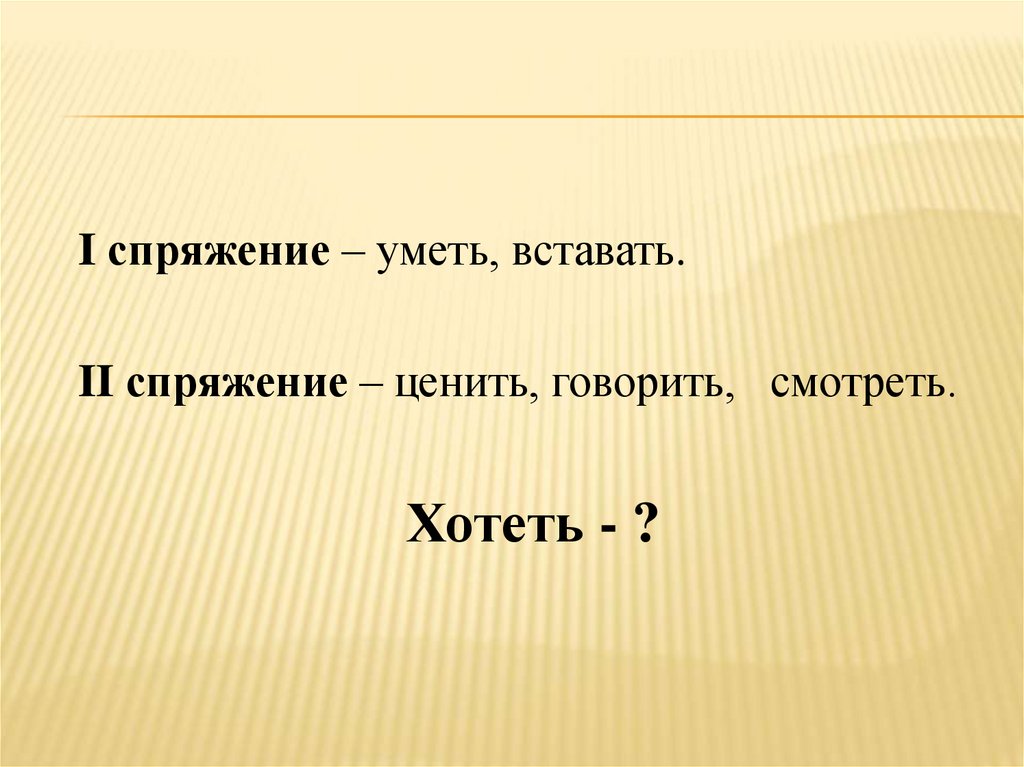 I спряжение – уметь, вставать.II спряжение – ценить, говорить, смотреть.