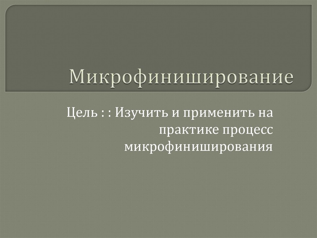 Микрофиниширование. Применение на практике процесса микрофиниширования