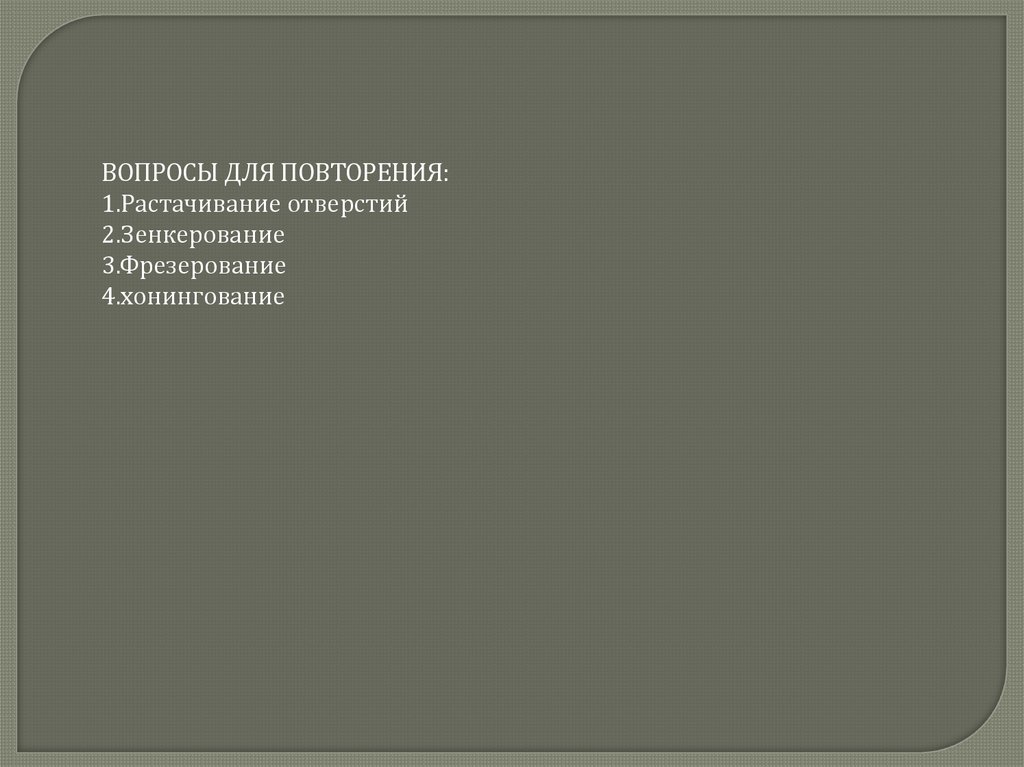 ВОПРОСЫ ДЛЯ ПОВТОРЕНИЯ:1.Растачивание отверстий