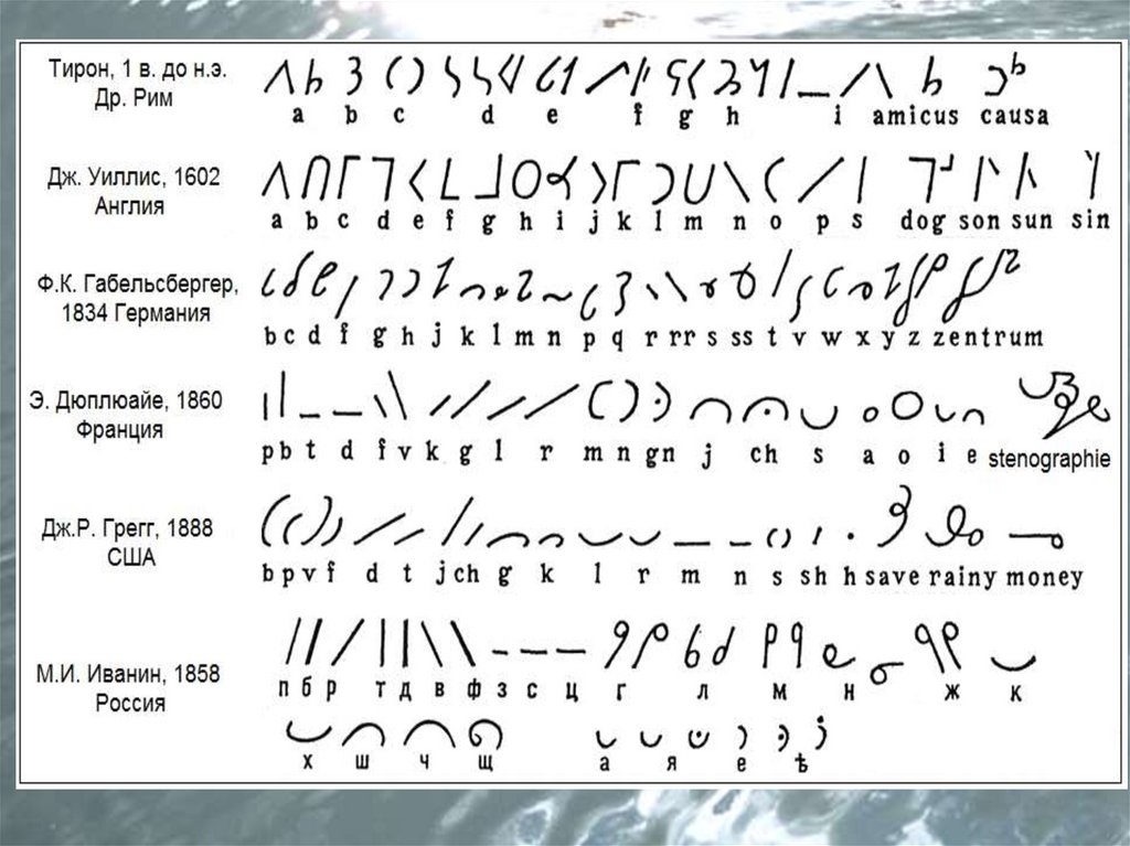 2. СТЕНОГРАФИЯ (от греч. στενός «узкое» и γράφειν «письмо») – применение особых упрощенных знаков для быстрой записи человеческой